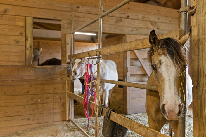 The property offers additional living spaces to cater to both guests and equestrian needs. A charming bunkhouse designed for equestrians and caretakers ensures that the equine operations run seamlessly while allowing for a seamless work-life balance and an apartment provides a haven for visitors, offering comfort and seclusion.
